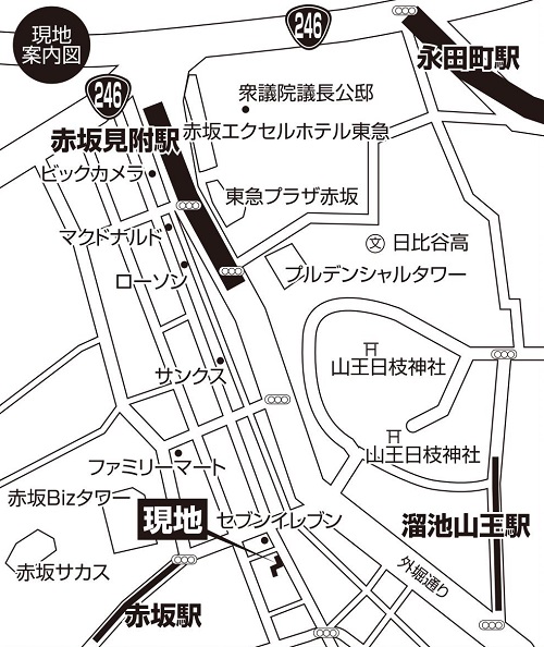 東京メトロ丸ノ内線・銀座線「赤坂見附」 徒歩5分 東京メトロ南北線・銀座線「溜池山王」 徒歩5分 東京メトロ半蔵門線・有楽町線・南北線「永田町」 徒歩9分 |